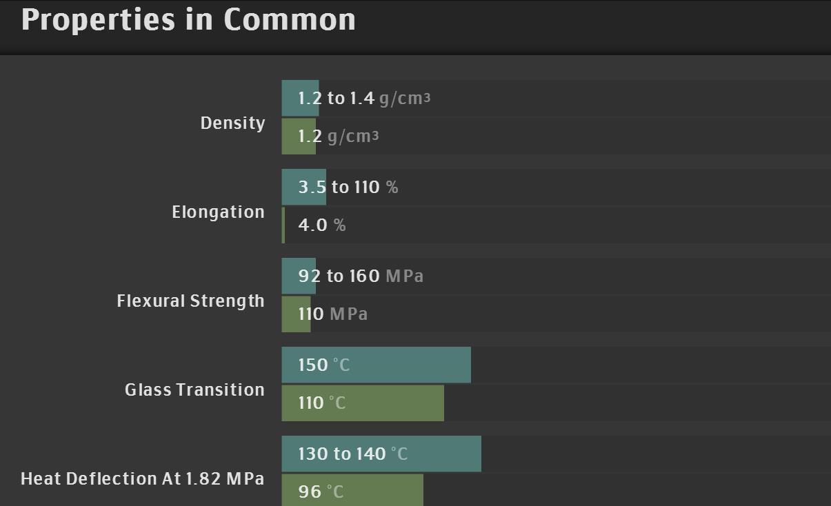 Key characteristics, Polycarbonate compared to Acrylic:
